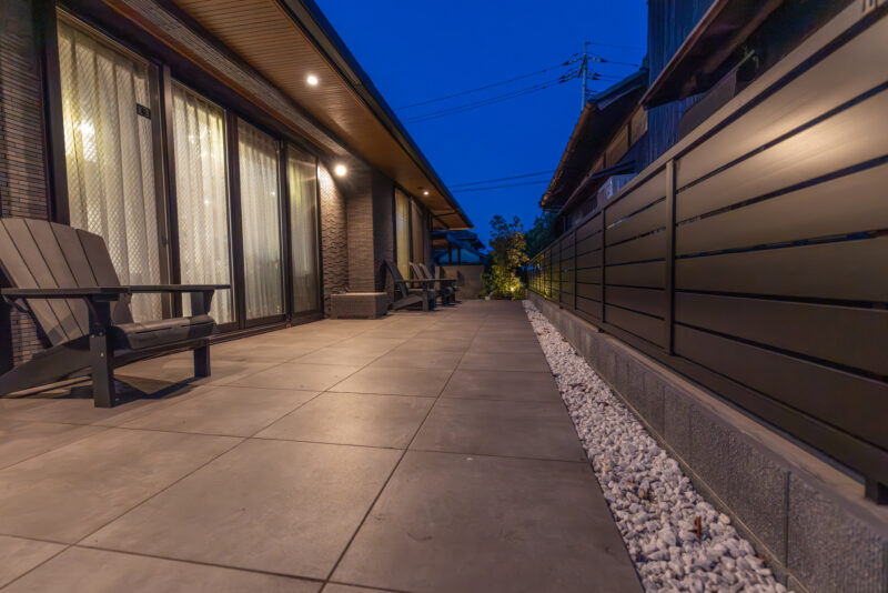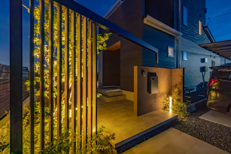 近年、ライティングへの関心は高まっており、夜間に足元を照らすだけでなく、樹木をライトアップする事例が増えています。これは美観の向上だけでなく、死角をなくすことで空き巣被害を防ぐという実利も兼ね備えています。