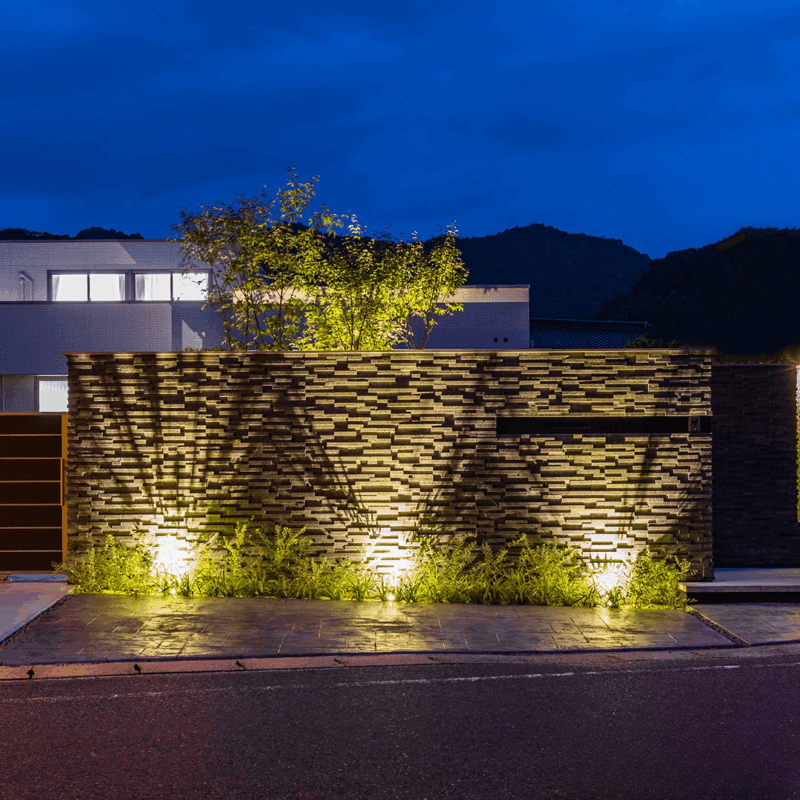 植栽のシルエットも相まって、夜のエントランスをドラマチックに演出します🙆♀️